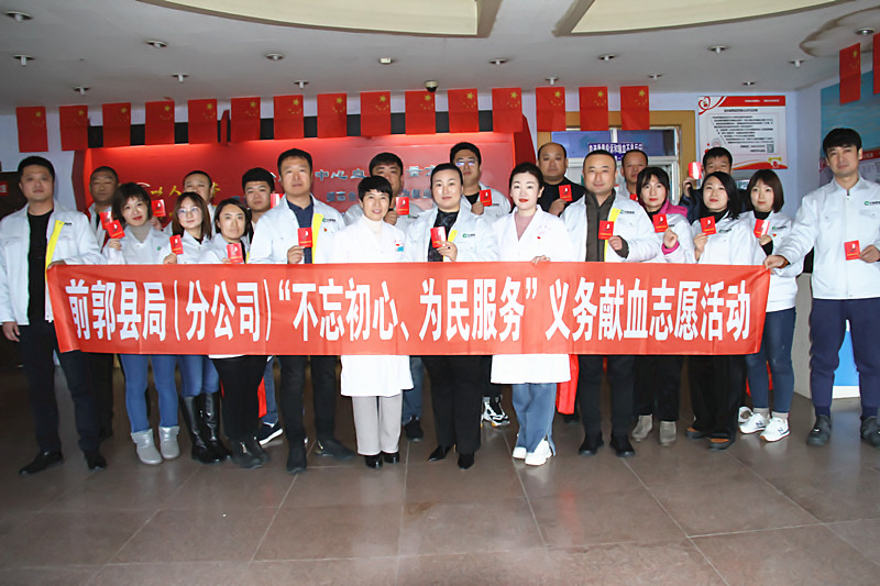 此次活动,是血站党支部与前郭县烟草专卖局(分公司)党支部联合开展的一次践行“不忘初心 牢记使命”主题教育的实际举措之一,充分发挥了党员干部的先锋模范作用,书写了无私奉献的大爱精神,诠释着共产党员全心全意为人民服务的宗旨。