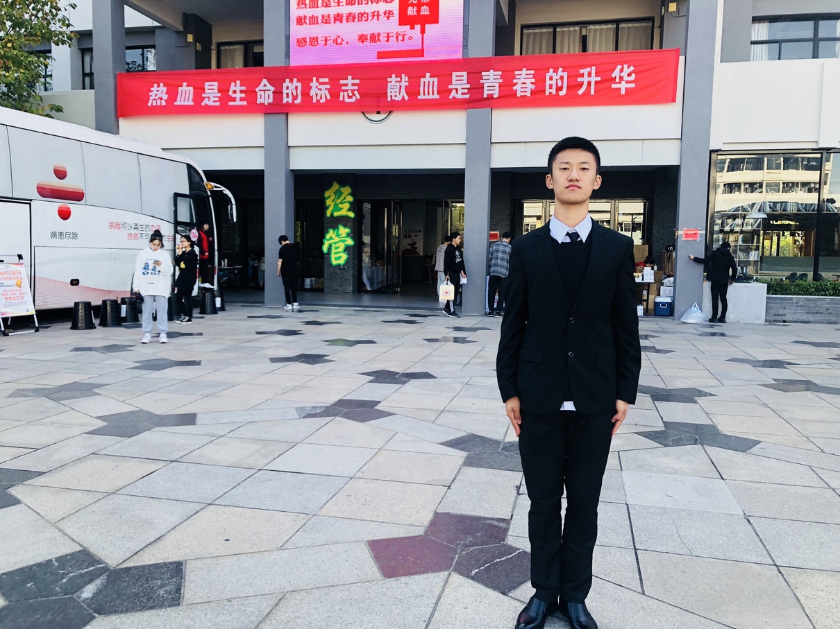 他叫方文韬,今年刚服完兵役回到学校,现在是学院英语专业的一名大一学生,当天,他成功献血300毫升。他说:“我高中毕业后,就去武汉服兵役了,当了两年武警,非常感谢学校为我保留了学籍。当兵守护国家,很光荣;献血救人,也很光荣。”