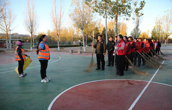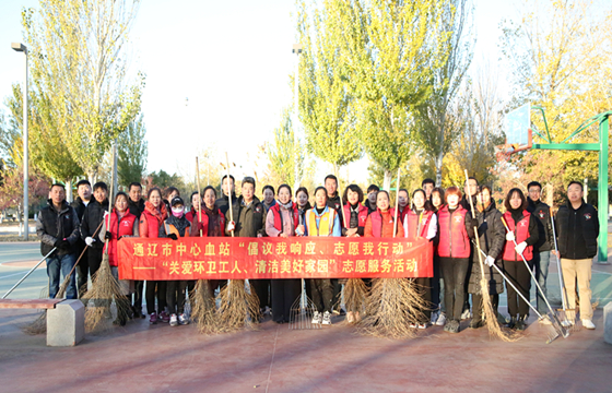 11月1日清晨,血站人再一次行动起来。在站长、书记金洁的带领下,由30名党员职工组成的志愿者服务队,6点多就来到了辽河公园,开展起“关爱环卫工人、清洁美好家园”志愿服务活动,用了一个多小时的时间帮助环卫工人清扫了多个篮球场和周边道路的落叶。
