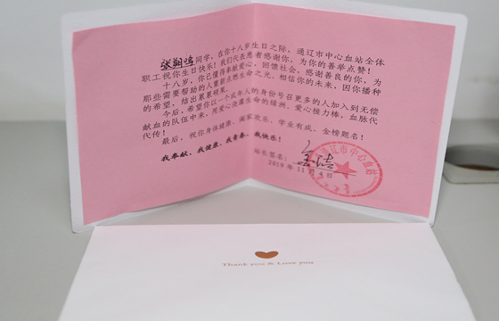 为表示对张朔鸣爱心献血的感谢,血站为张朔鸣定制了生日蛋糕庆祝他18岁特别的生日。无偿献血是一份小小的付出,却彰显了心存大爱的奉献精神,用实际行动弹奏了一曲无私献爱心的美妙乐章,为以后更好地融入到社会中,践行青春使命做好准备。