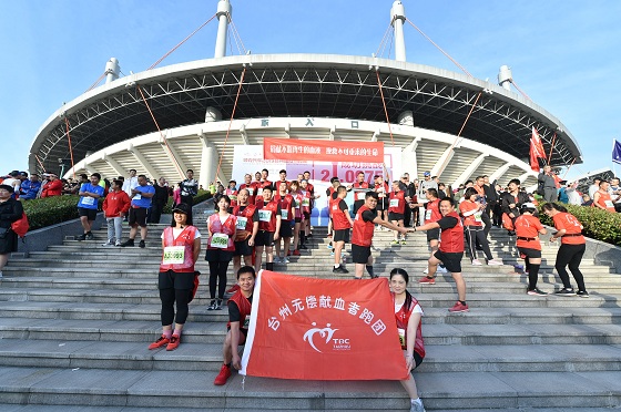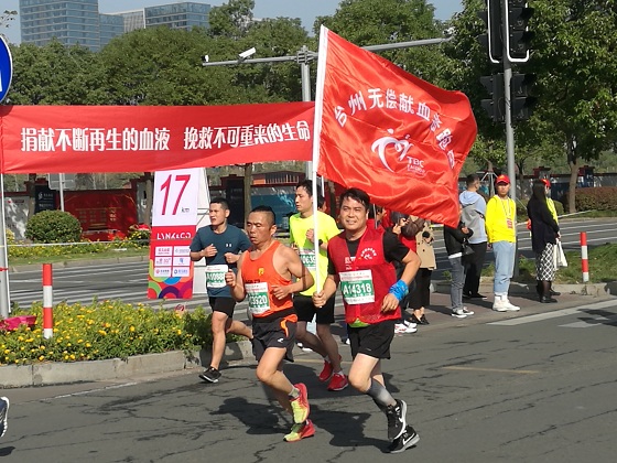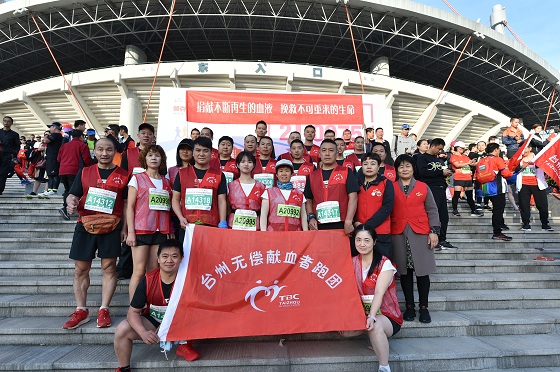 2019年11月10日早上8点,随着一声发令枪响,2019年台州国际马拉松顺利开跑。“台州无偿献血者跑团”再次出征,跑团成立于2016年,之前已经连续三年参加“台马”赛事,旨在通过马拉松赛事进一步扩大无偿献血宣传力度,展现广大无偿献血者“我运动 我健康 我献血”良好的精神风貌和身体素质。几年下来,引起了广大市民高度关注,取得了良好的宣传效果和传播正能量的社会效益。