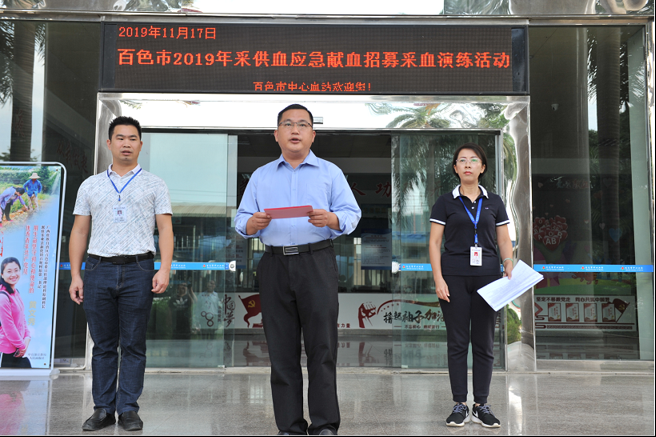 为保障在我市举办的“第十四届自治区运动会”赛事血液应急需要,有效应对突发事件带来的血液供应危机,提升血液应急保障处置水平,进一步完善百色市应急采供血队伍建设, 11月17日下午,百色市中心血站举行百色市2019年采供血应急献血招募采血演练。