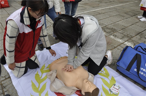 活动现场除了献血,同学们还可以在献血车上进行造血干细胞留样入库。“我们把献血宣传与造血干细胞捐献宣传结合在一起,同学们考虑好后可以直接在献血车上进行留样入库,这也是我们与其他学校不同的地方。”本次活动的学生负责人孙娜介绍说,“除此之外,我们还在现场设置了‘心肺复苏’操作技能展示,为大家普及急救知识的同时,也提升我们自身的应急救护水平。”