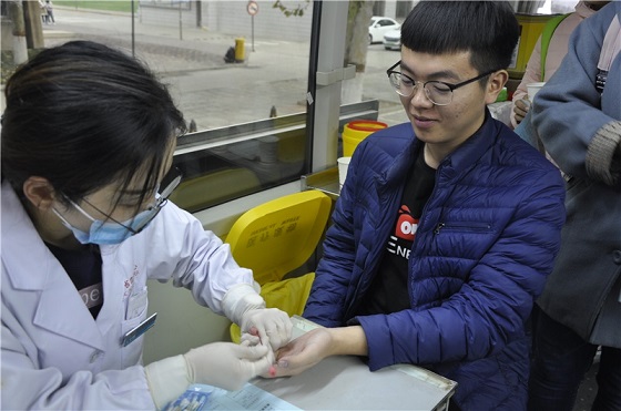 夜雨后的石家庄寒意渐浓,但却丝毫没有影响到河北医科大学临床学院同学们参加献血的热情。11月17日早上9时,等待献血的同学们早早就在院子里排起了长队,在学院青年志愿者协会志愿者们的帮助下完成填表、体检等程序后相继登上采血车,三辆采血车上人头攒动却井然有序,一张张热情洋溢的年轻笑脸传递着一份份火热的爱心。