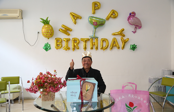 为了感谢范学军长期捐献热血、无私奉献的精神,11月20日,血站班子成员和部分工作人员一起为他过了一个特别的生日,并为他送上了精美的贺卡和生日蛋糕等生日礼物。当大家唱完生日歌让范学军许个愿时,他竟然大声说出“我希望血站越来越好”这个愿望,在场人无不感动,一颗人道、博爱、奉献的真心与血站人为民服务的初心产生了强烈的共鸣。