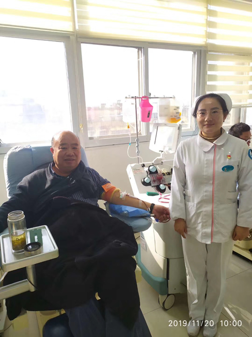 征询、体检、初筛、采集、孔师傅坐在采血椅上一边献血,一边深有感触和大家聊着,他说:“二十几年来,我见证了徐州市中心血站的成长与壮大,见证了徐州市无偿献血事业的兴旺与发展,机采室从一开始的狭小到如今的宽敞明亮、从两台机器到如今的数十台机器、从一开始捐献血小板的寥寥无几到如今人们的积极参与,同时也体会到了血站工作人员为徐州无偿献血事业的辛勤付出和巨大贡献。工作人员都清晰地记得,每次孔师傅来,只要看到献血者多,他总会先自发的帮助工作人员做好引导和服务工作,然后再坐到采血椅上接受捐献。