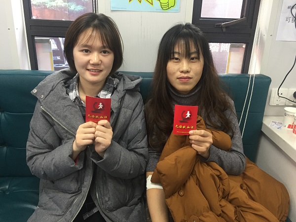 万利杰、罗中梅也是大二的同学,她们也是专程过来献血的,万利杰已经第三次献血了,而罗中梅还是第一次,第一次献血的她看起来很兴奋,不停地和同学讲诉献血的感受。万利杰说,她觉得献血是件特别好的事儿,在帮助别人的同时,对自身也有很多好处,所以她以后还会大力宣传献血,让更多的同学加入的献血的队伍中来。