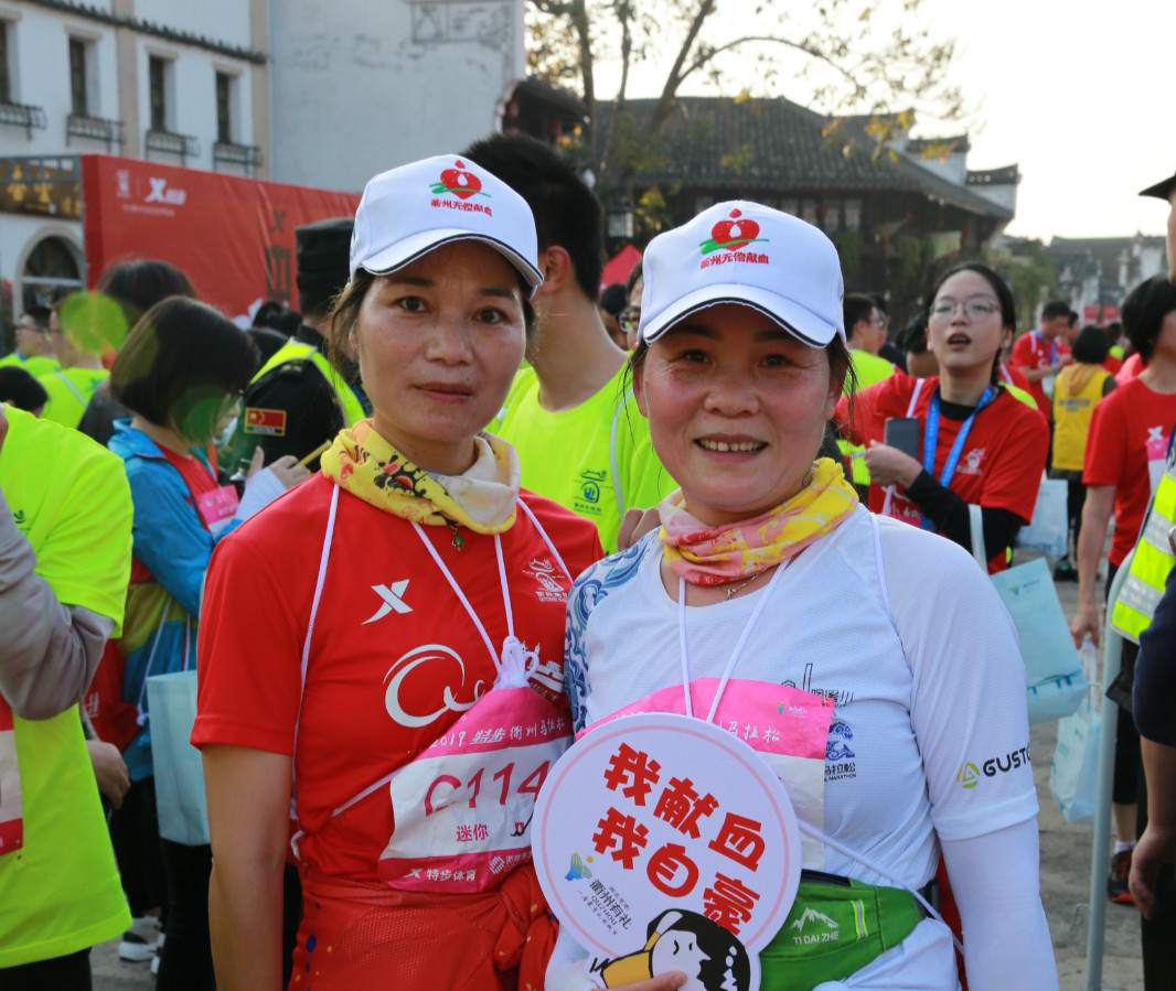 拥有10余年献血经历的徐春菊今年是第3次参加衢州马拉松,与以往不同的是这次她与好姐妹朱子英相约参加无偿献血跑团,他们都是多次参加无偿献血的献血者。她们说“献血很快乐,参加马拉松同时还能宣传无偿献血更加快乐!”
