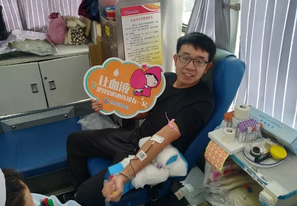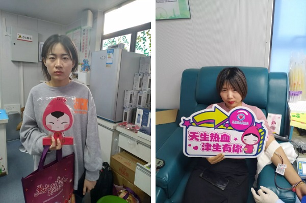 王同学是第一次参与献血。“我妈妈也参与过无偿献血。当我第一次看到那个红色的本本,就萌生了献血的愿望。其实想到献血心里还是有些慌张的,但想到自己的血液可能会在某次手术给一个人带去生的希望,我的心中又燃起了勇气。这一次的献血既是帮助别人,又是自我突破。”因为母亲的熏陶,给她带来了不一样的人生体验,将无偿献血这份爱心一代代的传递着。