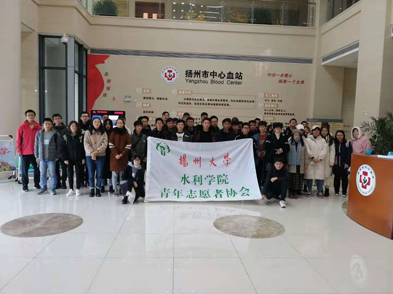 11月27日下午2∶00,天气:中雨,扬州大学水利科学与工程学院青年志愿者协会组织学院五十余名同学到血站参观,共同探索血液的旅程。