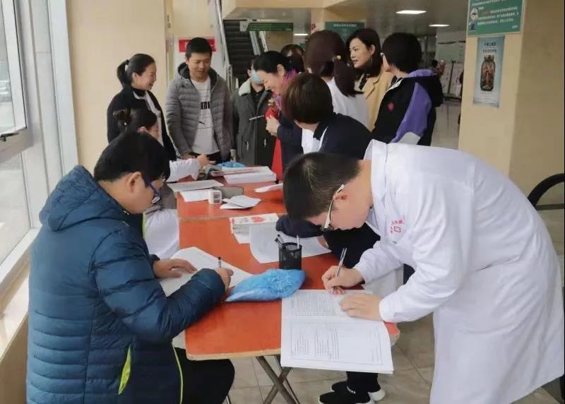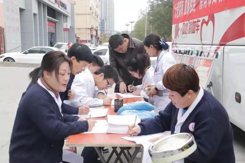 门诊楼前,无偿献血志愿者纷纷上前,在血站工作人员的引导下有序填写报名登记表、测量血压、抽血化验、采血。同时,血站工作人员耐心向献血者讲解无偿献血知识及献血后的注意事项。