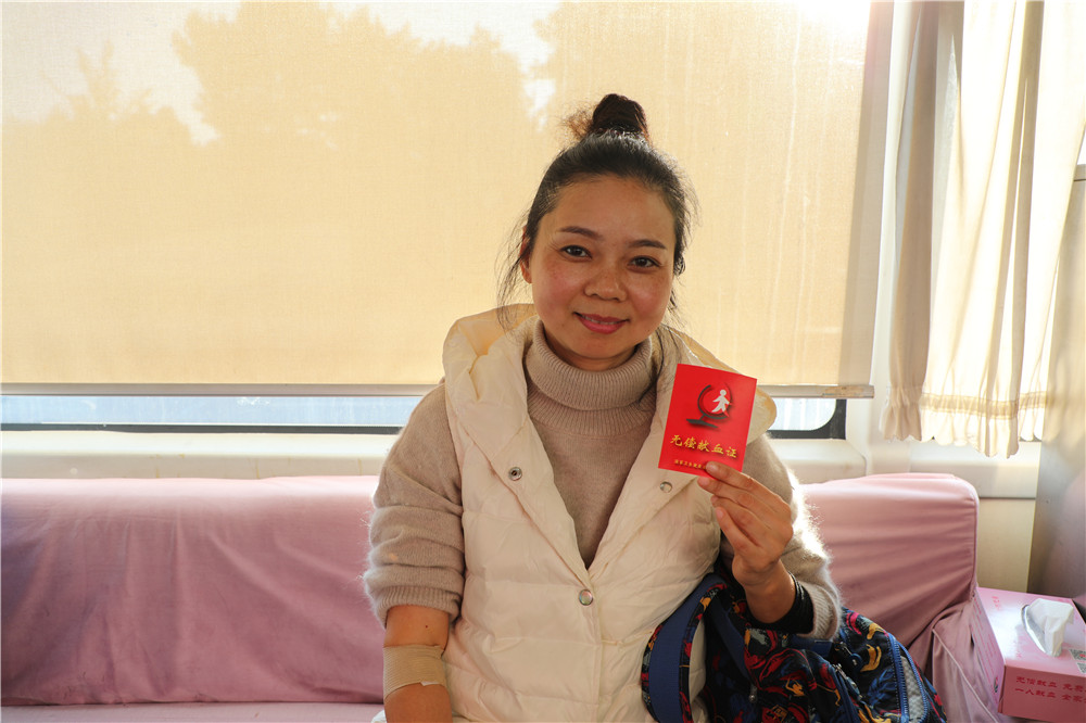 志愿者杨晓蓉参加无偿献血