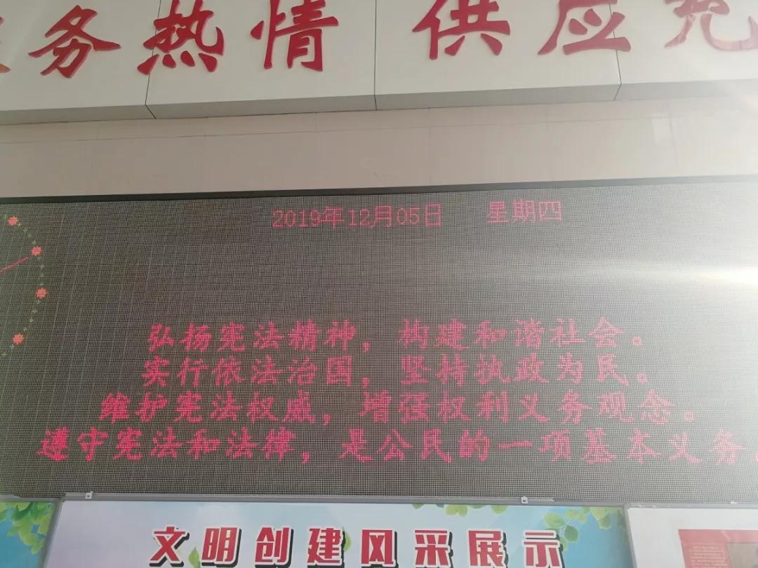一是在洛阳市中心血站办公楼一楼大厅及各献血点电子屏以文字、图片、视频等多种形式宣传宪法知识,扩大宪法学习途径和范围;二是制作宪法知识宣传版面,摆放在繁华路段,引起路人纷纷驻足观看;三是通过微信工作群把《依宪执政,初心使命》、《宪法情,中国梦》、《我与宪法》等宣传作品转发给每位职工,号召职工认真学习;四是12月6日下午,组织开展了宪法集中学习活动,市中心血站党支部副书记、副站长朱丽莉制作了精美的幻灯片,为大家详细讲解宪法序言部分,着重把握深意、掌握要点,深刻领会宪法修改的必要性和重要性。随后,市中心血站党支部书记、站长吕运来带领大家进行庄严的宪法宣誓。