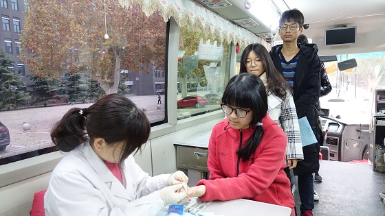 河北省血液中心工作人员为同学们进行血液检测