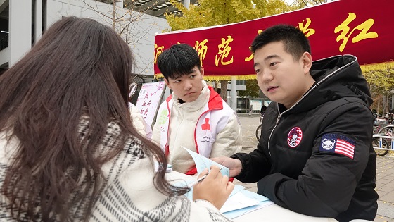 11月23日至24日,河北省血液中心冬季“高校献血月”活动走进河北师范大学,两天的时间里,大批的学生走上献血车,用无偿献血的方式表达他们参与公益事业的热情。