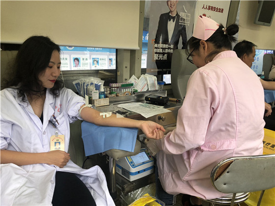 除了医护人员,海医一附院的后勤工作者也积极加入到无偿献血爱心行列中。