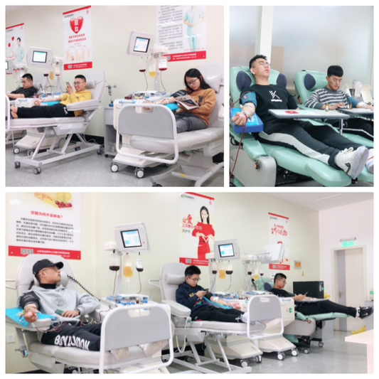 就这样一批批的献血者三五成群的涌入献血屋,表达着想为患者分担的热忱、咨询着如何献血的事宜。跟着志愿者、工作人员一步步地进行着献血的征询、体检、化验。