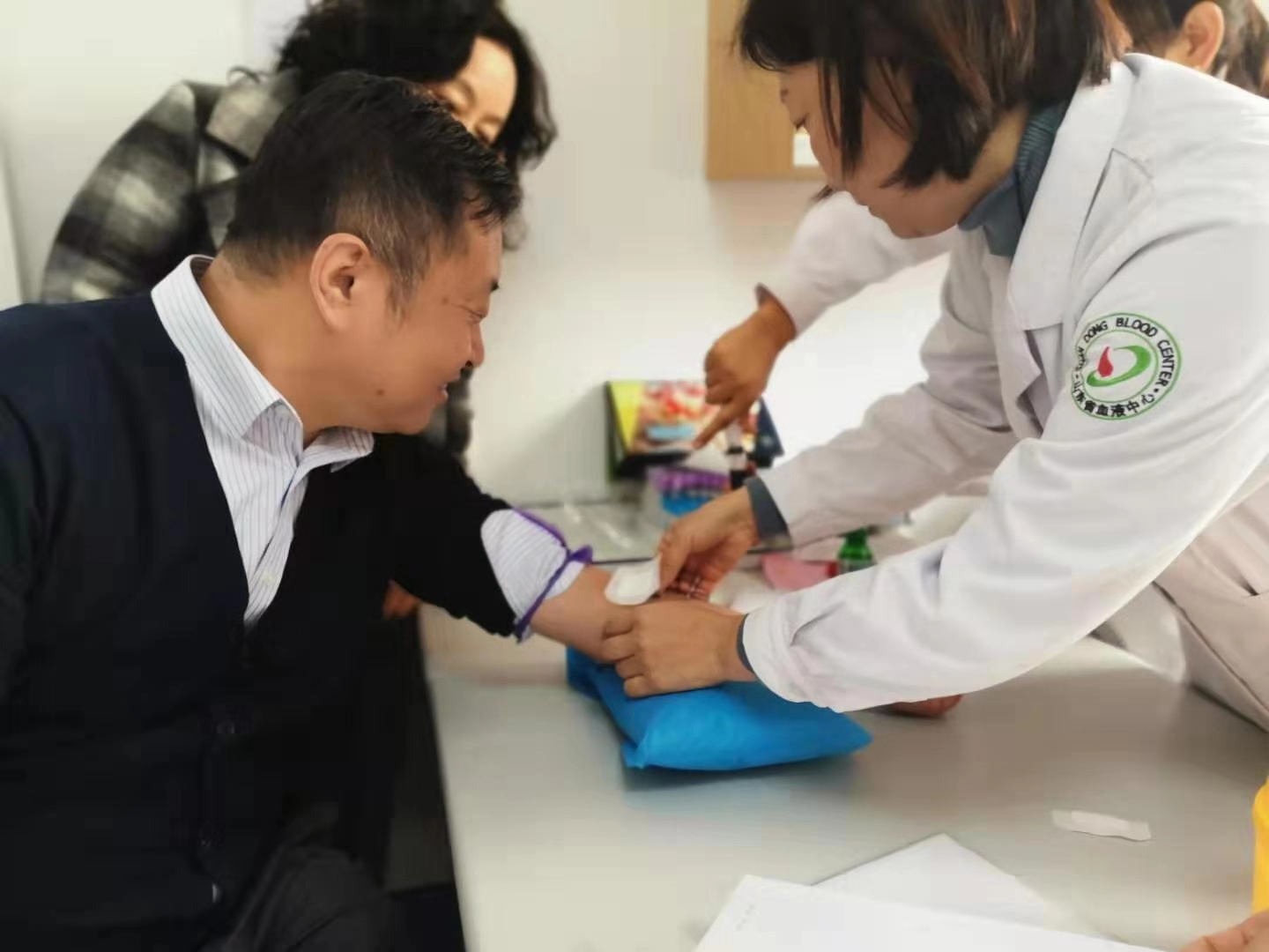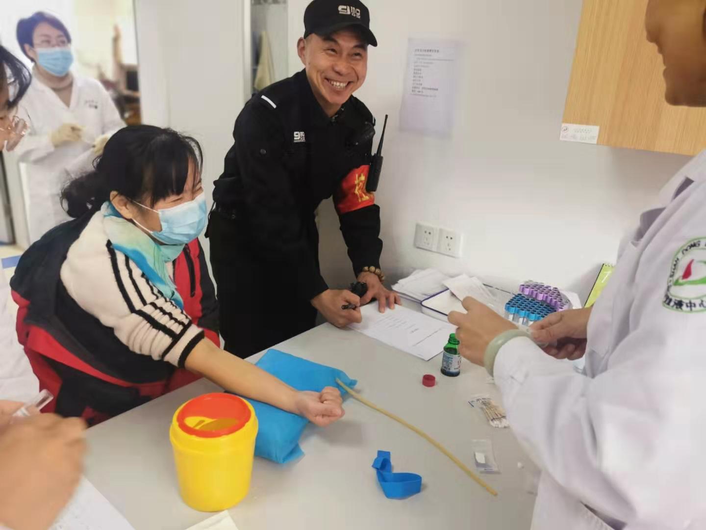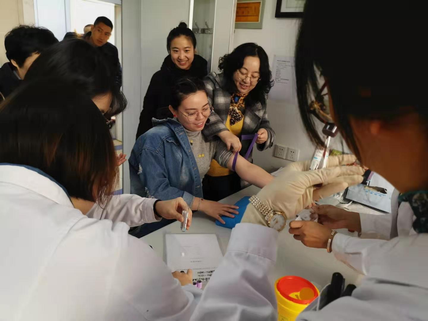 献血办主任王淑荣一马当先,率先抻出胳膊,随后其科室职工依次上阵。有一位女同事特别紧张,双眼紧闭,咬紧牙关,内心虽然恐惧,但还是坚定地伸出了胳膊。血友病诊疗中心主任张心声更是率先垂范,为科室职工带来榜样的力量。可敬的保卫大哥也不甘示弱,不光身体力行,还动员其家属一起勇做“试验品”。