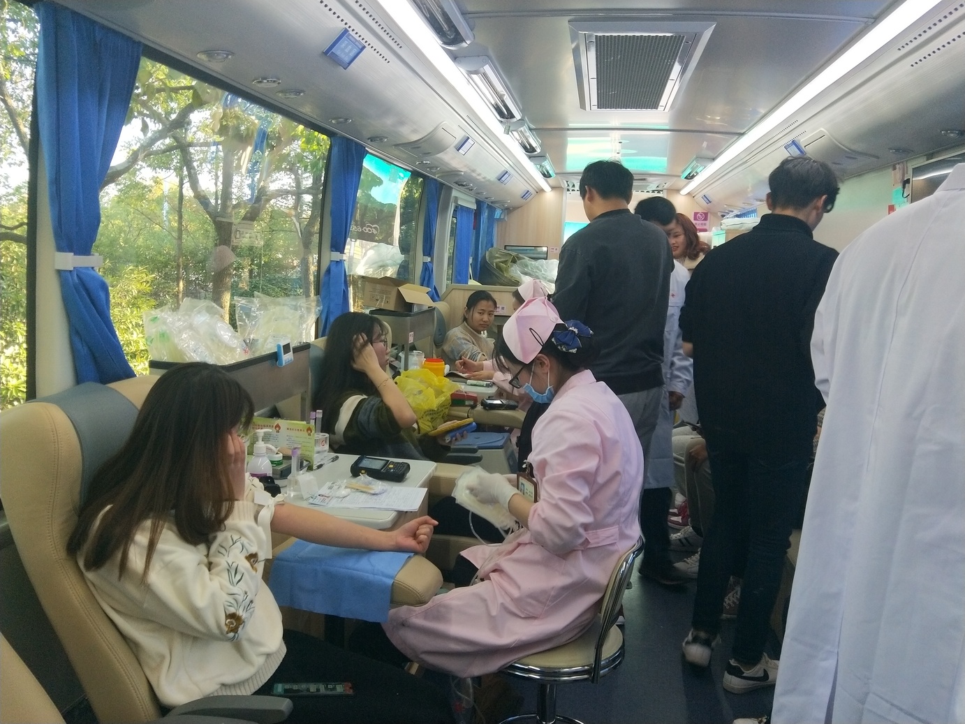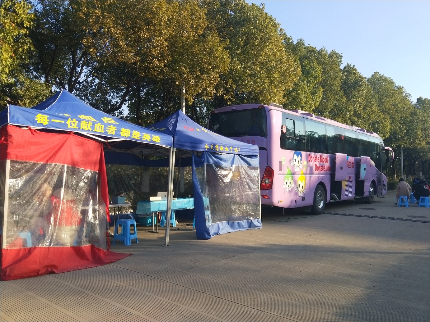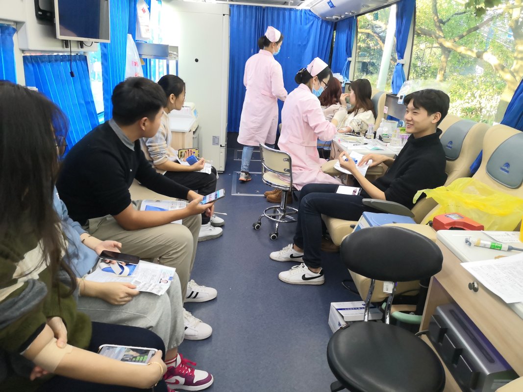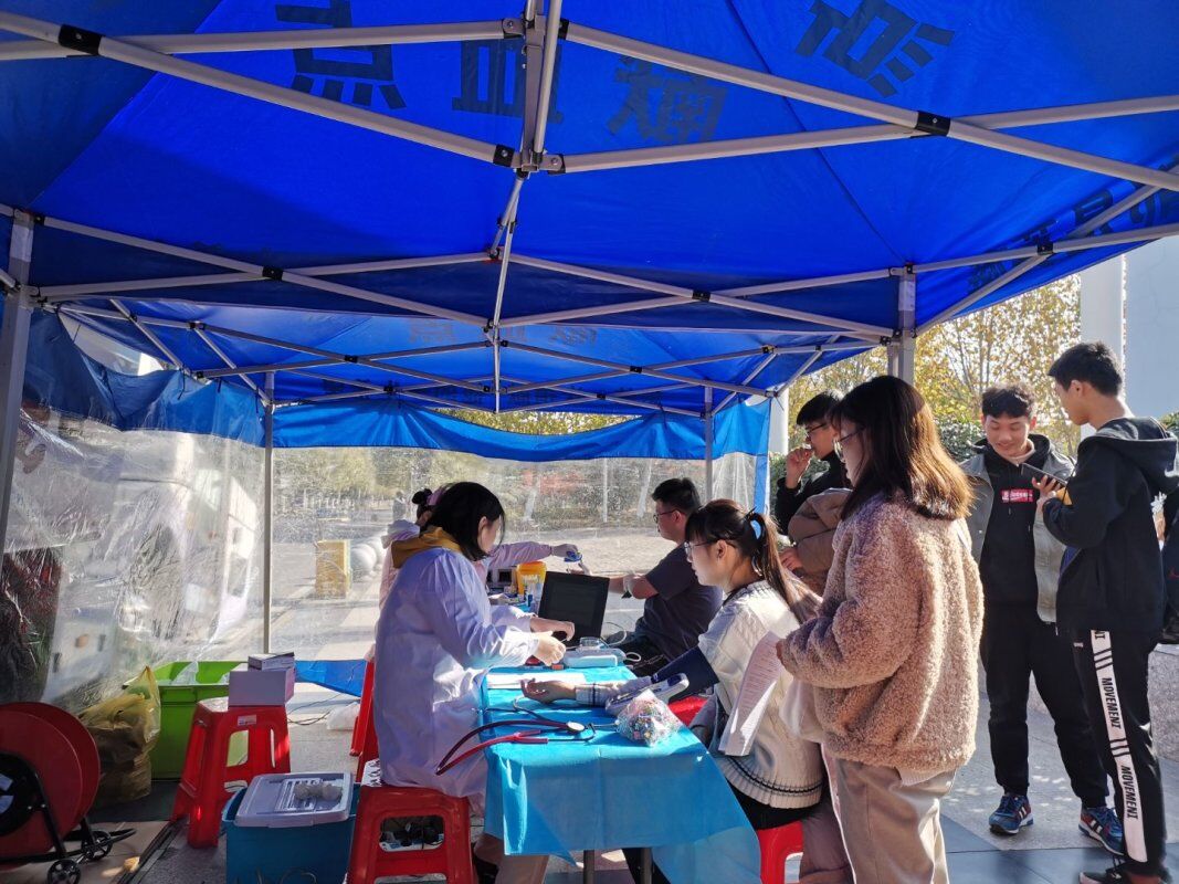 12月2日,我中心携手合肥学院开展了以“有你们,真好”为主题的无偿献血公益活动。上午9点,两辆献血车分别驶进合肥学院一期、二期两个校区。在献血车到达之前合肥学院红十字会的志愿者就已经布置好了活动现场,且许多志愿者已经排起了长长的队伍。