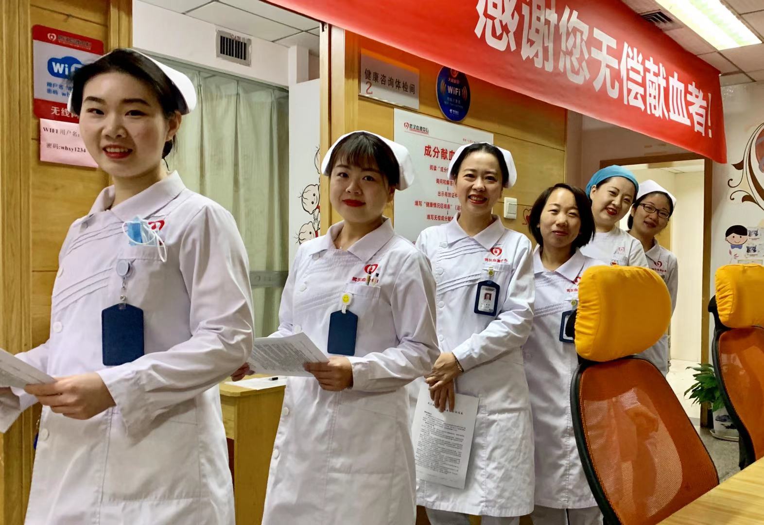 原来,这是武汉血液中心成分献血科医护人员自发组织的一场集体献血。“前几天29位空军雷达学院的学员们来集体献血,让我们大为感动,于是促发了我们这次的集体献血。”医生闫蕾说起这次集体献血的来龙去脉。