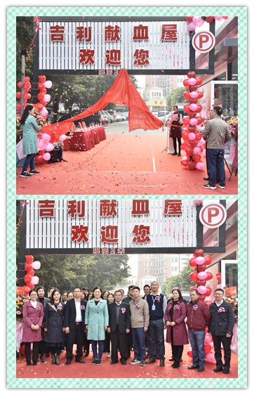 在一片热烈的礼炮声和掌声中,现场全体领导嘉宾共同为吉利献血屋揭开爱心牌匾。