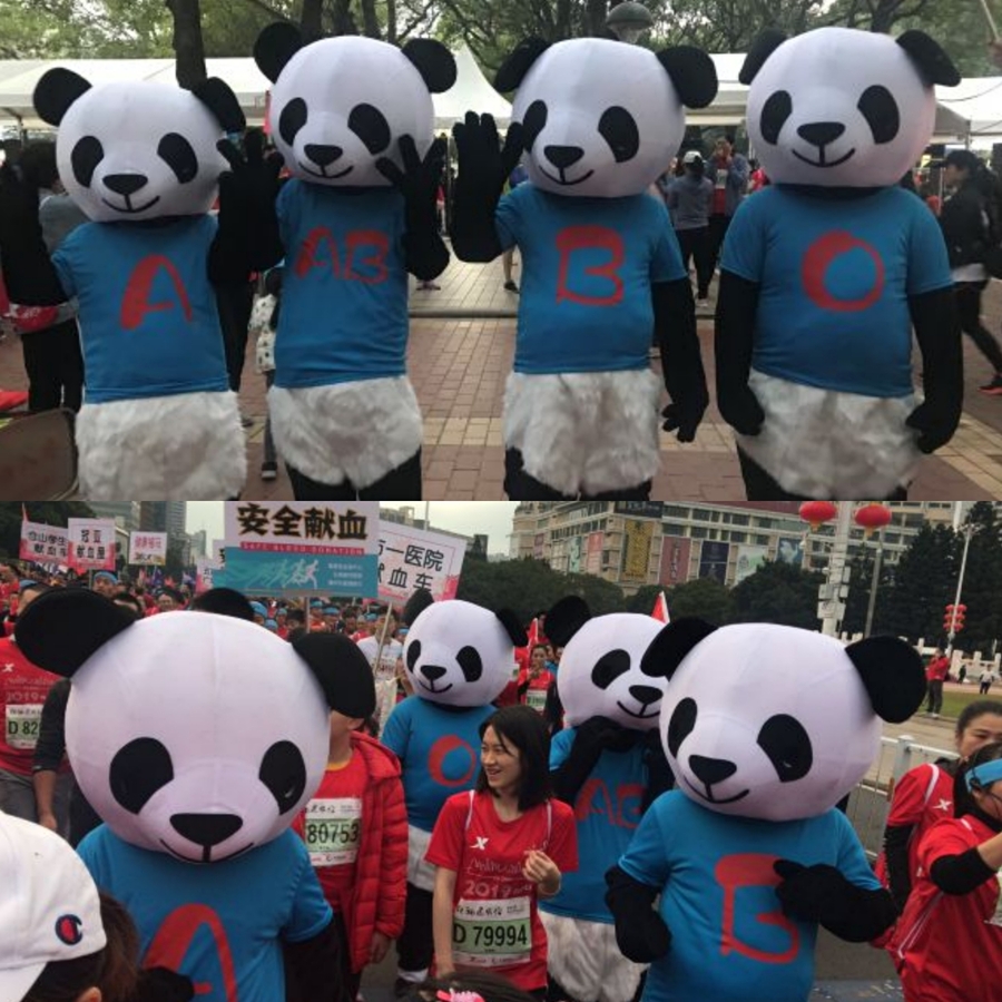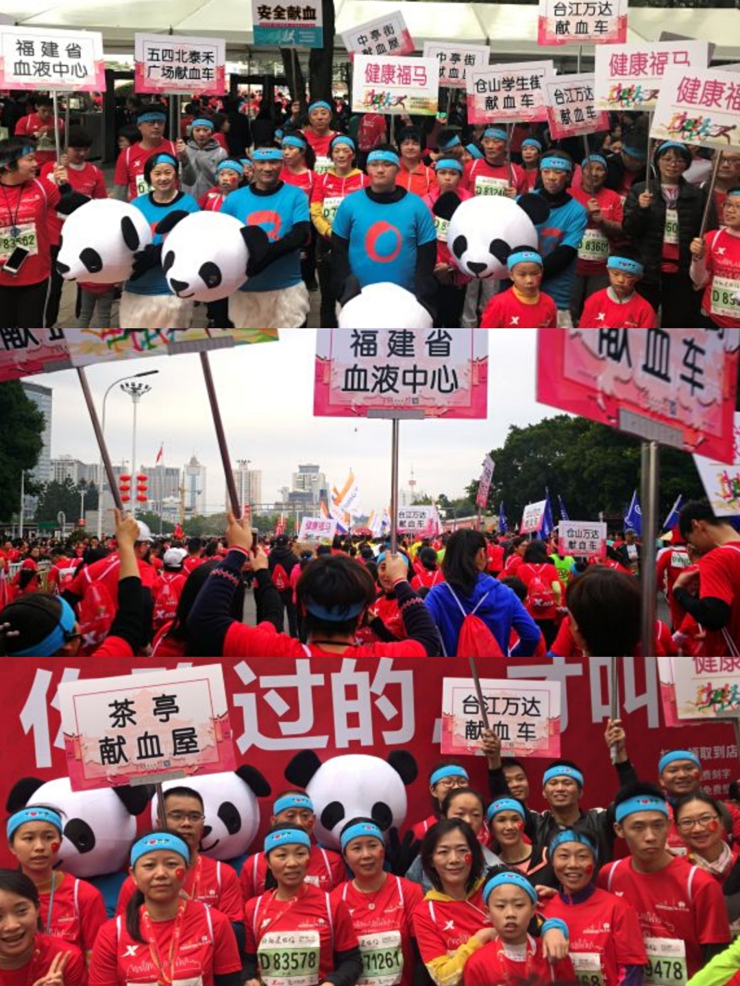 在热情洋溢的人群中,有一支特别的队伍——无偿献血宣传方阵。方阵由无偿献血者、献血服务志愿者以及福建省血液中心工作人员组成。他们头戴“我爱福州”发带、脸贴爱心国旗,高举“安全献血健康福马”及市区内十个献血点手举牌,由代表A型、B型、O型、AB型献血者的“熊猫”领队,一同在福马赛道上传播健康生活理念。