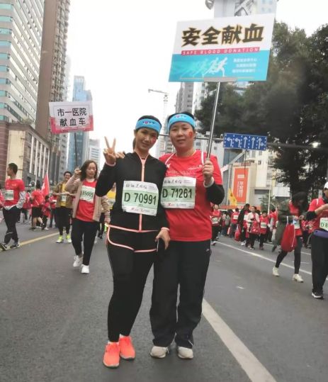 一位跑友在奔跑过程中,不忘展示“安全献血”的宣传标语。她说,同马拉松运动一样,无偿献血也是一种健康生活方式。同时,无偿献血还是帮助他人恢复健康的保障方式。参加省血液中心组织的活动,在福马赛道上宣传无偿献血,特别有意义!希望大家都健康快乐!