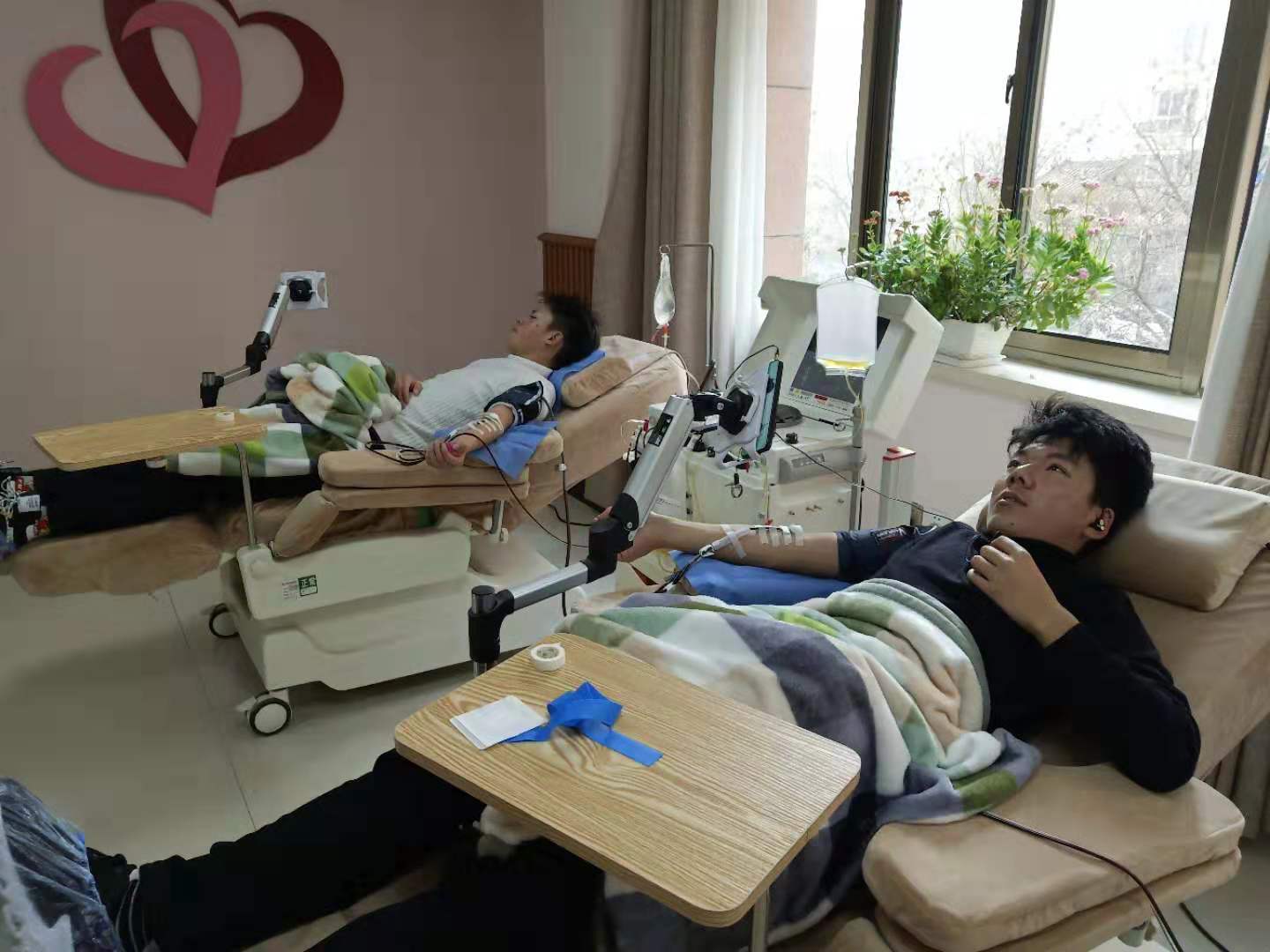 大家在全国无偿献血金奖、无偿奉献五星奖获得者景屹老师及李希鹏的指导下填写无偿献血体检征询表,采血护士在一旁认真测量地血压、化验血样,大家整齐有序的排队等候采血,一切都那么宁静和美好。隆冬大地,严寒挡不住奉献的脚步,在富有爱心的志愿者眼里,献血也许只是一种默认的义务,并不需要华丽的语言来修饰。当他们伸出手臂,鲜红的血液汩汩流出时,所有人都明白它的价值。