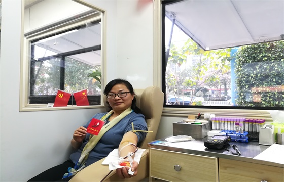 市卫健委副主任邱鸿清在献血