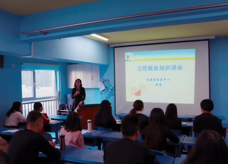 12月12日西宁巧课励教育培训学校组织开展无偿献血知识讲座。讲座由青海省血液中心欧斐老师主讲。