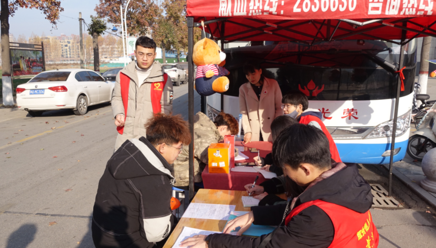 冬天天气虽寒冷,但丝毫没有挡住大学生志愿者们献血的热情。近日,黄淮学院和职业技术学院分别开展“致青春 献热血 彰‘献’大爱精神”无偿献血志愿活动。大学生是无偿献血宣传的主力军,他们不仅参与志愿者服务,同时号召了许多老师和同学参加无偿献血。
