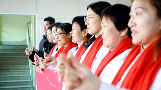 为一线采血护士赠送红围巾(马克 摄影)