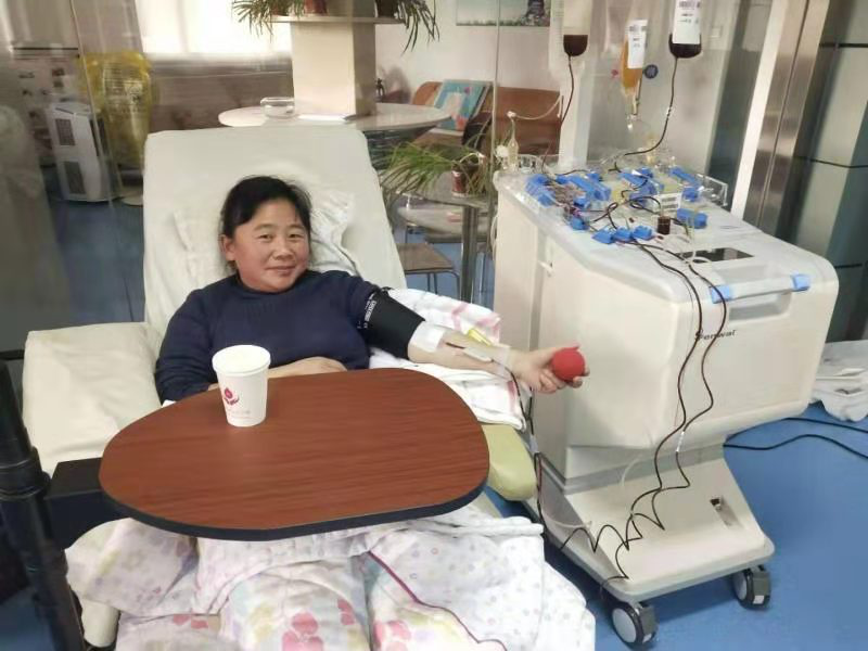 12月26日,谢梅娟如约来到盐城市中心血站东台采血点机采室,别看她体格小,体重只有108斤,血小板计数却很高,仅65分钟就成功捐献2个治疗量的血小板,工作人员都笑称她“人小能量大”。
