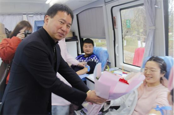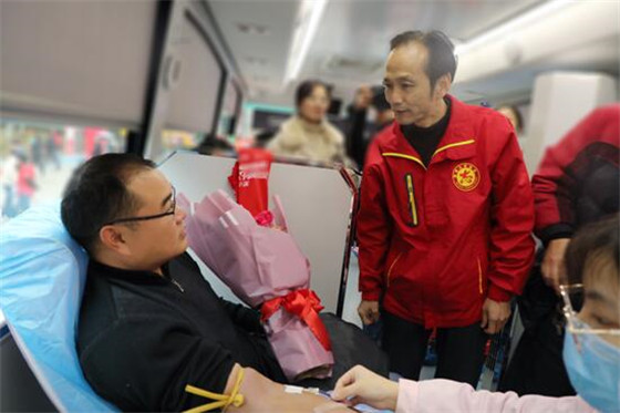 (郴州市志愿服务联合会会长雷纯勇看望献血者)
