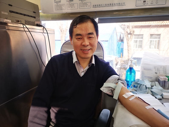 泰安市中医医院院长陈涛9年献血2000毫升(于瑞杰 摄影)