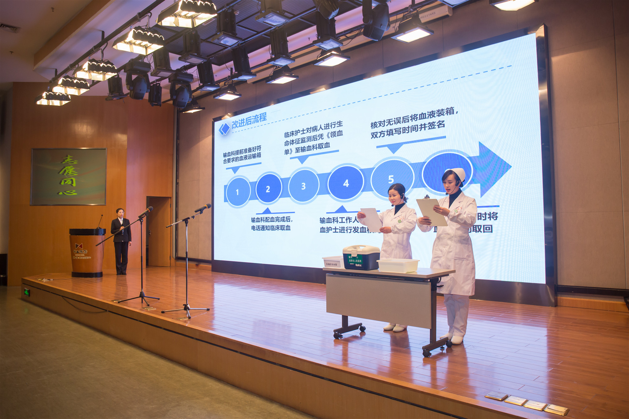 此次竞赛,根据《临床用血管理办法》、《临床用血技术规范》、《医疗机构临床实验室管理办法》、《血液安全监测指南》、《全血和成分血使用》等临床输血相关国家标准及行业标准,以PPT讲解与现场情境展示相结合的形式,对临床输血标准的执行背景、计划、过程、成效进行展示。