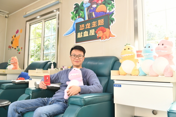 市民贺晨峰一大早闻讯赶来献血,与小恐龙展开一场冬日的约会,他说:“没想到献血也可以成为一件时尚的事儿。听说有个恐龙主题献血屋,特地大早从家里出发了,没想到成为恐龙给主题献血屋的首献。我的亲友们听说纪念品是各种颜色的小恐龙,都让我多献血,集齐所有小恐龙。”