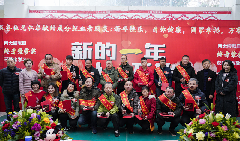 活动现场,刘家亮、胡建国、李新国、尚保金、刘宗文、朱华、谭箭飞、程栋、刘长荣9位献血献到60岁的“献血达人”,及2019年12月份新诞生的24位百次无偿献血者,也闪亮登场。