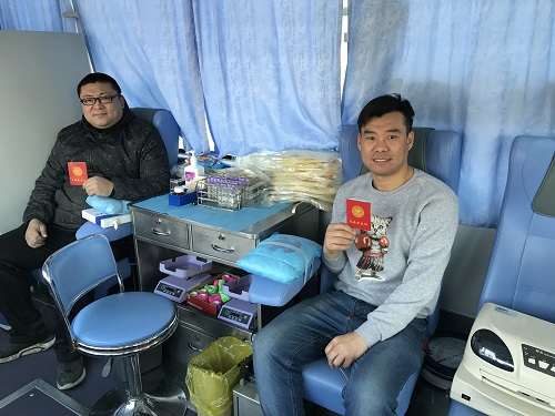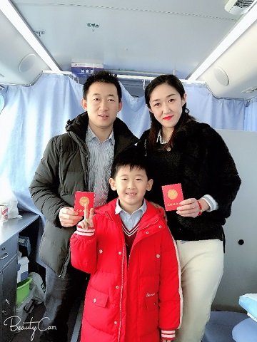 当天,献血车还迎来了一位特殊的献血者----“熊猫侠”刘晓梅,她从2011年就开始无偿献血,加入青岛市“熊猫侠”大家庭后,更是尽己之力“援助”需要血液救助的同胞。2020年元旦这天恰逢她32周岁生日,刘晓梅带着自己的爱人和儿子一起来奉献爱心。她说,昨天接到血站工作人员的电话说有患者需要她这个血型的熊猫血,她便做好了充分的准备,今天想在新年的第一天成为第一位献血者,尽早为需要的人送去生命的礼物,也为自己的庆生。献血过程中我们才了解到,原来夫妻二人都是医务工作者,他们都深知安全血液对临床救治工作的重要性,所以夫妻二人虽然工作都比较繁忙,但是这么多年来他们都一直坚持献血,并时常带着儿子一起,希望他年满十八岁以后也加入到无偿献血队伍中来。