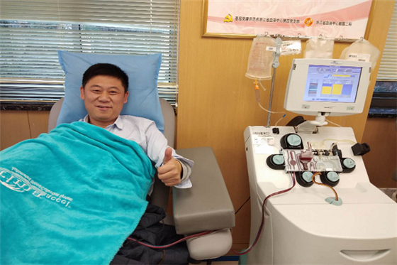 他叫万明顺,杭州市儿童医院皮肤科副主任医师,从事小儿皮肤科。他身型矫健,和蔼可亲,他说:“只要符合条件,我都要坚持无偿献血,用自己绵薄的力量帮助需要用血的患者。尽已所能,帮助别人,是广大医务人员义不容辞的责任!”由于医务工作者平时工作特别忙,这次趁着难得休息的元旦假期,来血液中心捐献血小板,希望可以帮助需要的人。他以实际行动诠释着医者仁心,无私奉献精神,传递着医者大爱!