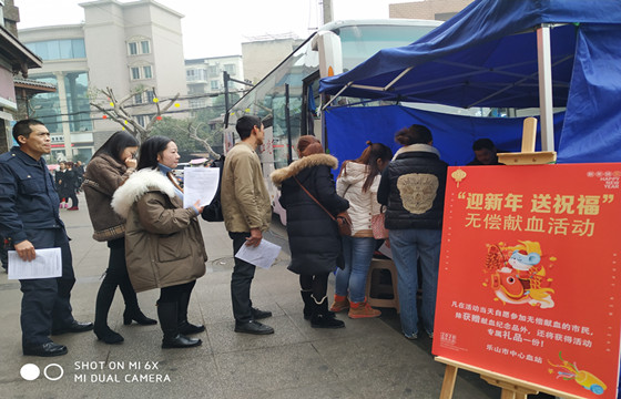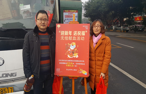 为保障春节期间乐山11区、市、县临床救急用血,存储充足的血液,我站在峨眉、井研、沙湾、五通桥区、犍为、夹江街头采血点开展“迎新年,送祝福”无偿献血活动,通过活动招募、带动更多的市民参与无偿献血,为感谢在活动期间参加无偿献血的市民准备了节日专属纪念品。