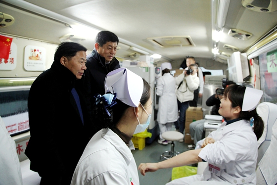 中心医院副院长张开刚、血站站长周林慰问献血者(于瑞杰 摄影)