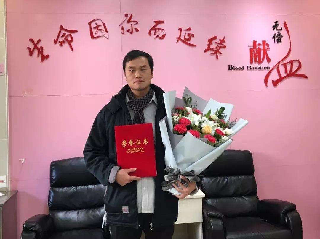 洛阳市第112位百次无偿献血者张雷:第1次献血时间2012年1月10日,第100次献血时间2019年10月13日。期间共捐献全血2次400毫升,机采成分血101次196治疗量,3次荣获全国无偿献血奉献奖金奖(2014年、2016年、2018年)。