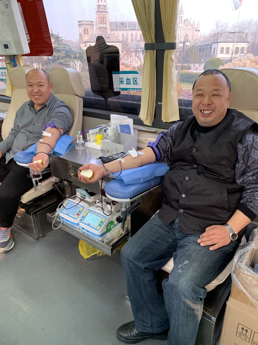省血液中心采取多项措施,举办冬季感恩活动,发送招募短信,在齐鲁晚报、齐鲁壹点、山东音乐广播等媒体发布血液紧张信息,招募更多的献血者参加无偿献血,缓解省城临床用血的需求。作为采血一线的体采科职工,也纷纷挽袖参加无偿献血。近日,洪楼广场献血车驾驶员刘佃贞和弟弟刘佃波再一次携手参加无偿献血。刘佃贞同志是全国无偿献血奉献金奖获得者,这是他25次参加无偿献血,献血量达到10000毫升,在他的带领下,亲朋好友都加入了无偿献血队伍,其弟刘佃波已经参加无偿献血10次,献血量达到3000毫升。驾驶员刘雪杰也和父亲一起来解放桥献血车每人热血400毫升,献血总量都达到2000毫升。