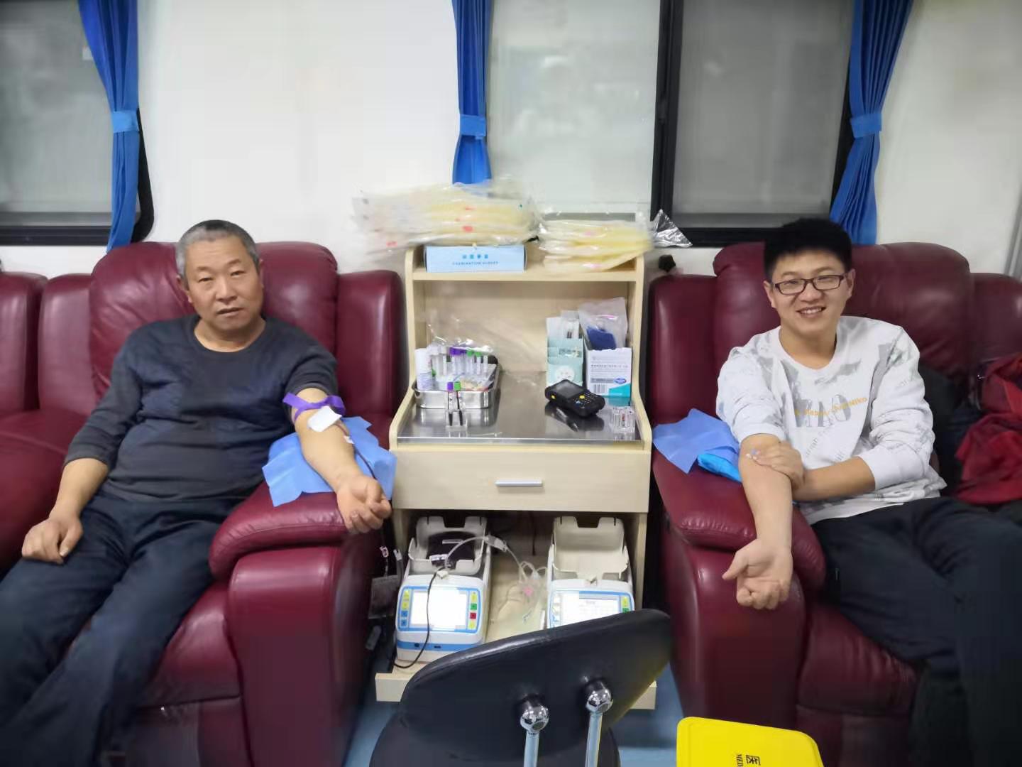 刘雪杰(右)父子俩献血