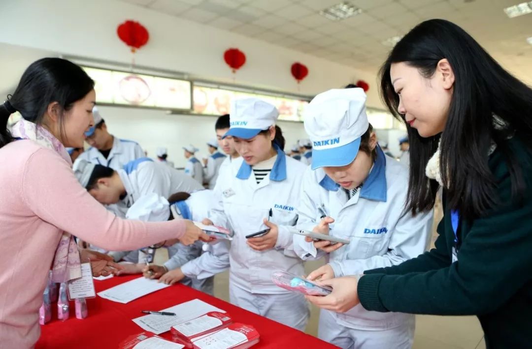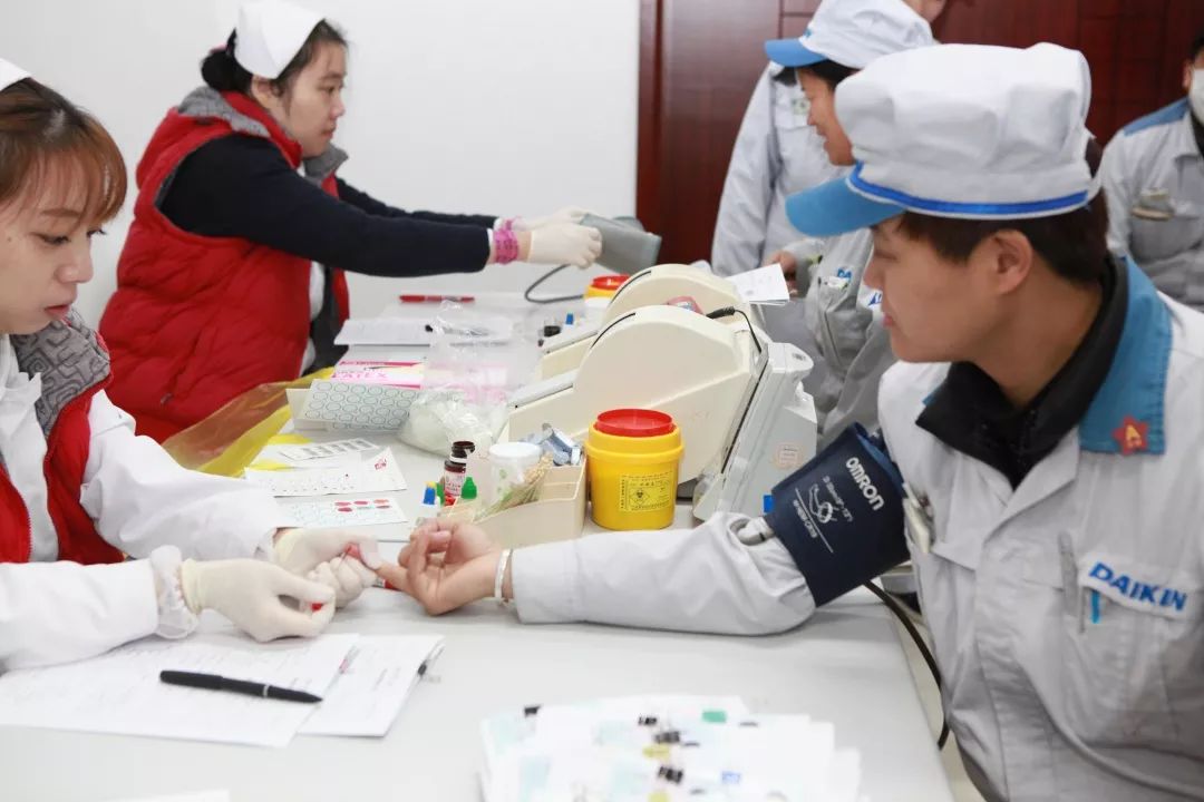 1月17日,位于闵行区莘庄工业区申富路上的大金空调(上海)有限公司的152名员工团体撸袖无偿捐献热血,希望在返乡过年前献出一份份热血真情,挽救急需要输血救治的患者,回馈“第二故乡”对他们的关爱,这样的活动已持续开展了10个年头。一天时间里,共有152名大金空调员工慷慨撸袖捐献49600ml热血。