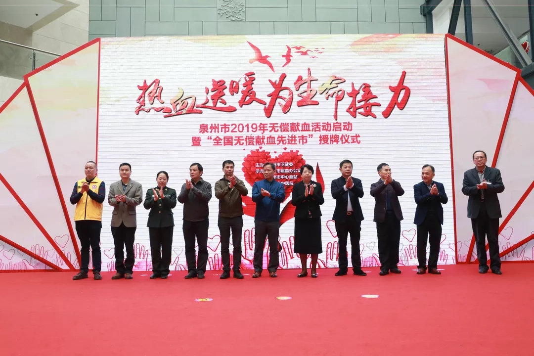 泉州市2019年“热血送暖,为生命接力”无偿献血活动启动暨“全国无偿献血先进市”授牌仪式在泉州市中医院举行。自此拉开2019年市直卫健系统医务人员带头献血的序幕。全年,委直属及驻泉医疗卫生单位1432人无偿献血,献血量达454000毫升,占市直及省部属单位的38.4%,春节期间的临床用血基本上来自医务人员捐献。