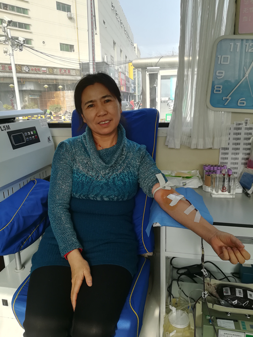 刘女士是从2013年开始的无偿献血,回忆起当初第一次来献血时的场景刘女士不禁乐开了花:第一次是陪同我爱人来的,本想着来奉献奉献爱心,谁知道他那段时间经常喝酒熬夜转氨酶高最后化验结果不合格没献上,我就寻思不能白来一趟啊,最后我就先体验了一次!从那一次以后啊基本上坚持着每半年都会来献一次血,心想着能献献爱心帮助帮助别人,对自己身体也有好处,现在生活水平都提高了,吃的油腻献献血还能换换新鲜的血液,降降血脂挺好的。聊着聊着刘女士就麻利的掏出身份证件递到工作人员手上。查询后得知刘女士已经捐献全血18次,累计献血量达6800mL。刘女士开始熟练地填写着无偿献血者征询表,随后又近一步做了血液的初步检测,检测结果合格后便是进行无偿献血了。撸起袖子,这次她依然选择了捐献全血400mL。看着涓涓血流缓缓的流入采血袋中,她自豪地说:我平时身体倍棒,很少感冒吃药,可惜的是再晚两年就60岁了,趁着现在献血年龄还允许就再多做两次贡献!
