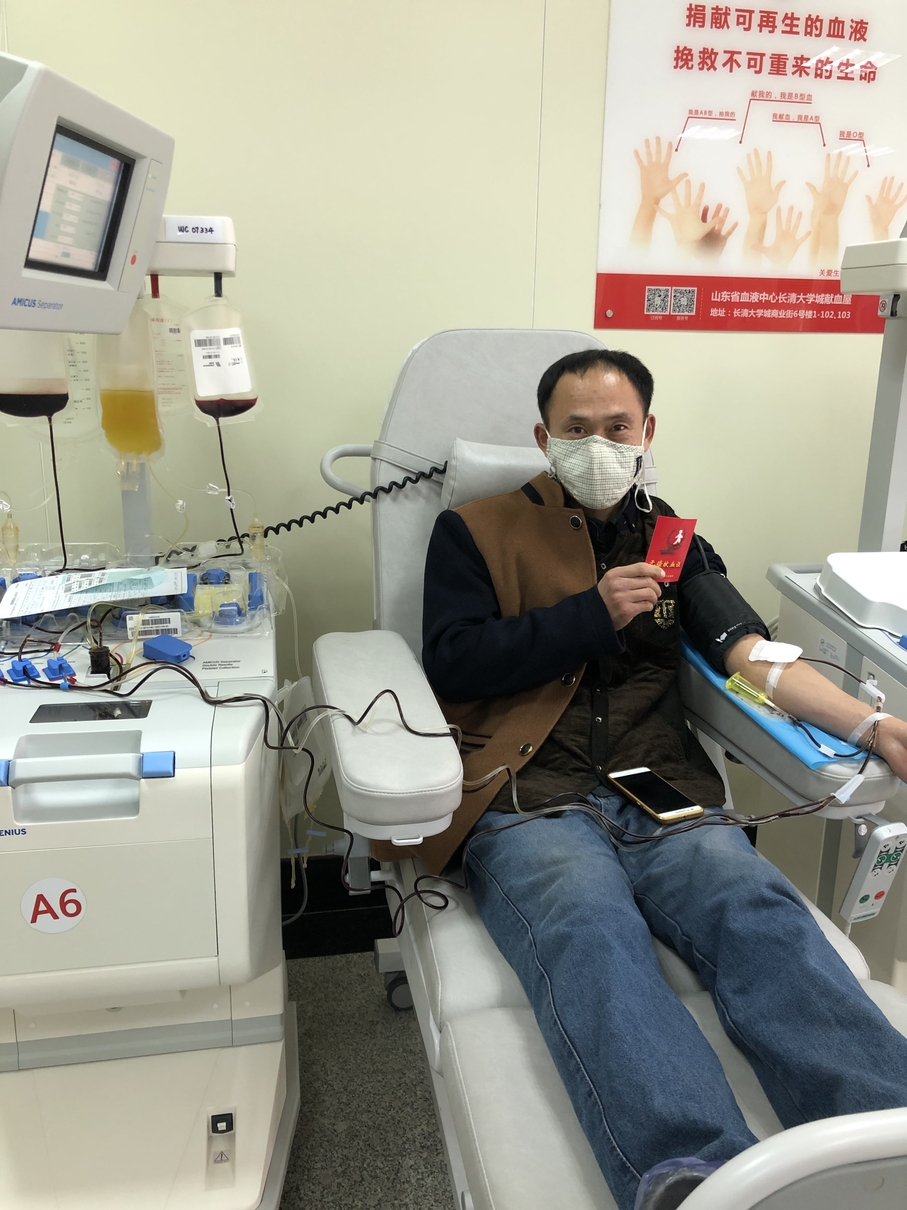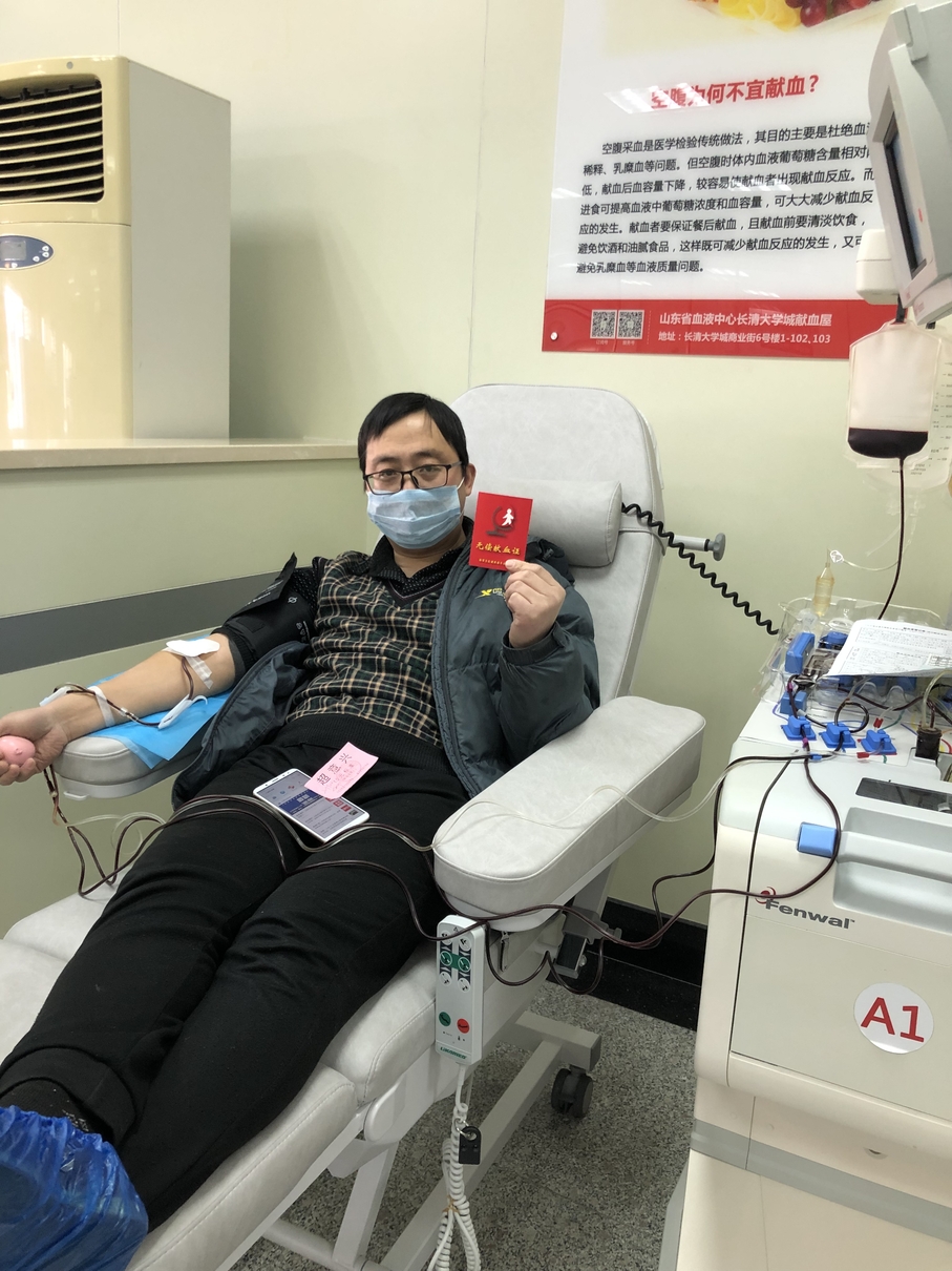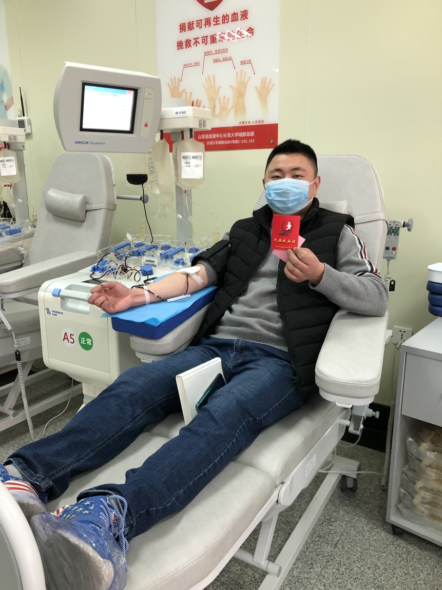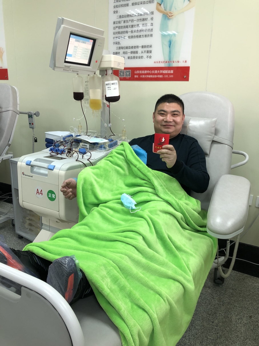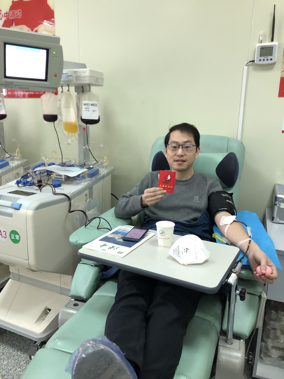崔灏大哥是工大的一名教师,前一晚看到学生们都要延期开学,医院病患急需血小板。大清早就奔入献血屋,还主动要求献2个治疗量,言谈举止中透露着一份人民教师对社会的担当!