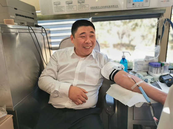 积极组织公益活动并带头参加无偿献血的吴修强(周宁 摄影)